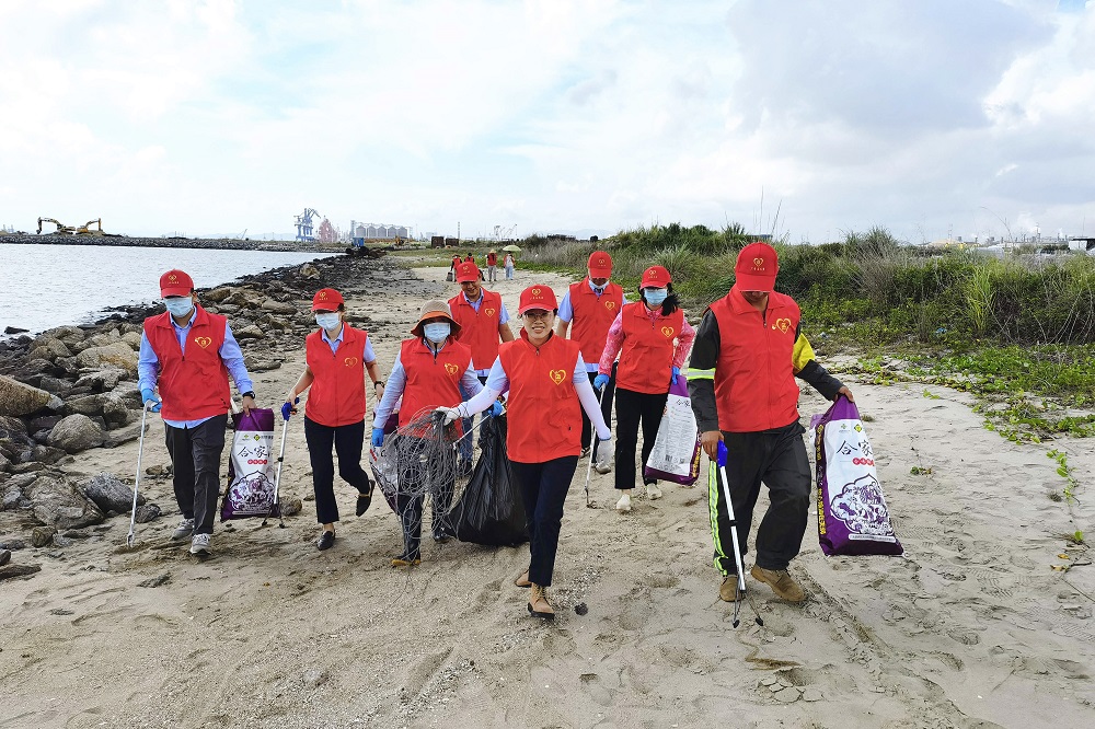 活动中,党员、志愿者们分工合作、互相配合,在阳江港19#码头外沿海滩清理海洋垃圾。他们身穿红马甲,迎着海风,顶着烈日,手持编织袋、垃圾夹等清理工具,不怕脏、不怕累,认真捡拾海岸边的饮料瓶、塑料制品、泡沫箱、破渔网和其他小型废物品,一个个忙碌的身影成为了海边最亮丽的风景线。