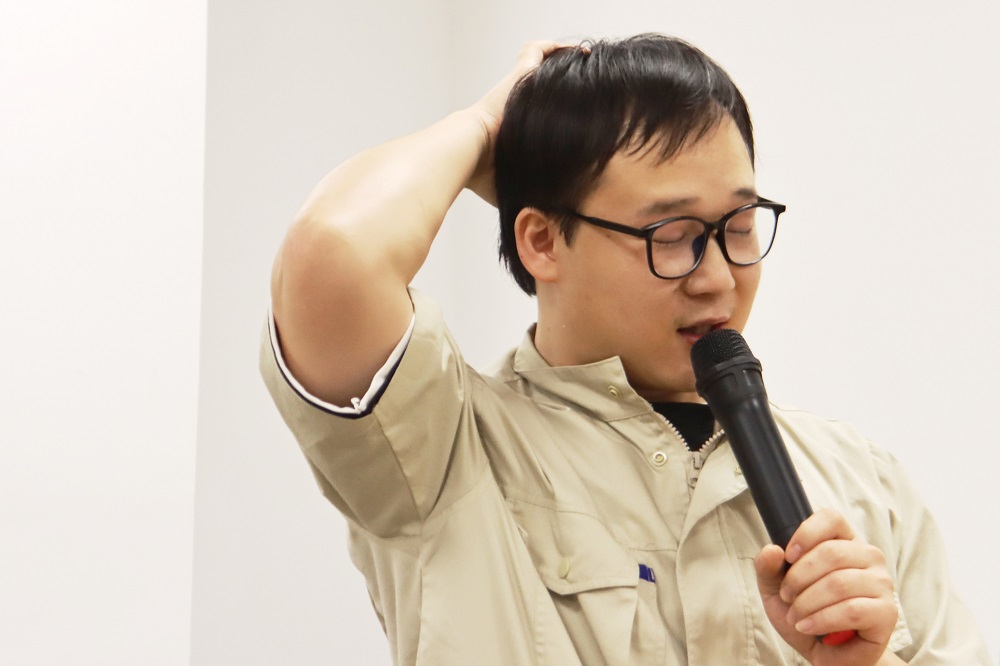 来自第二组的许飞,他表示工作应该融于生活,除了工作时与师傅相处,下班后也是与师傅一起吃饭、一起居住的,无论工作上产生多少分歧,生活里都会归于和谐平淡,沟通很重要。